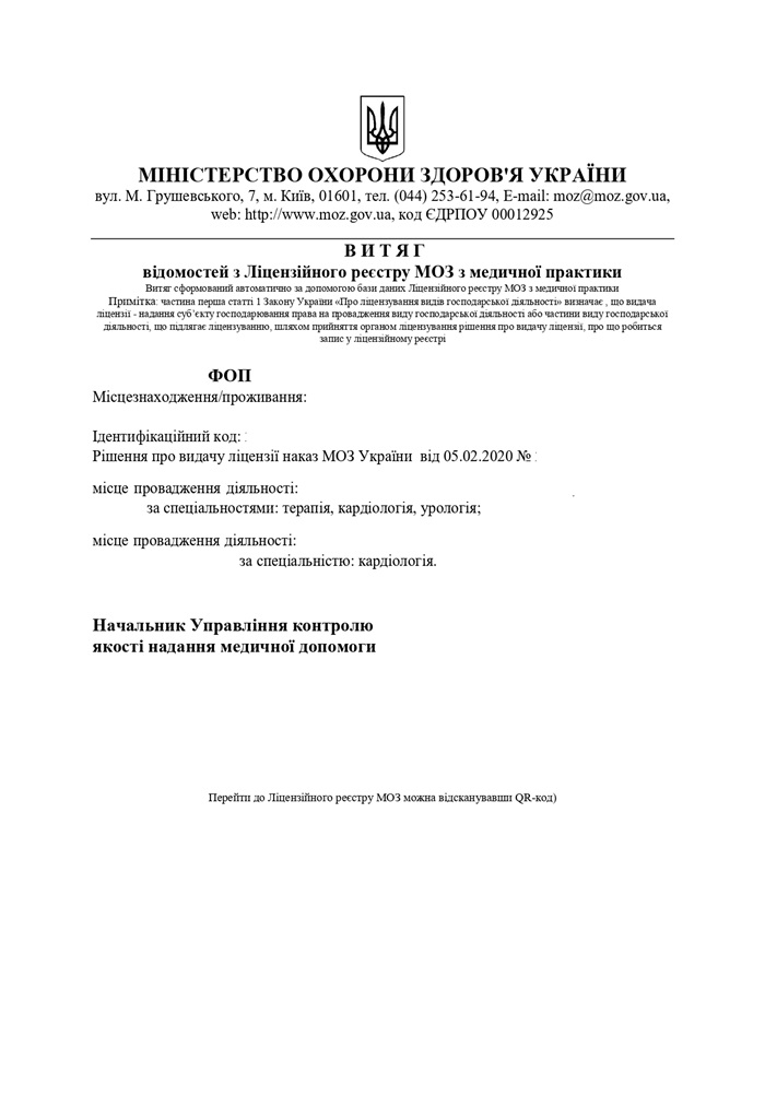 In Ukraine, a Medical License is permanent, meaning it does not need to be renewed or extended regularly. However, despite its indefinite validity, the license may be terminated in the following cases: