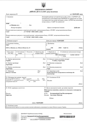 - Підготовка повного пакету документів для отримання ліцензії на імпорт в Україні