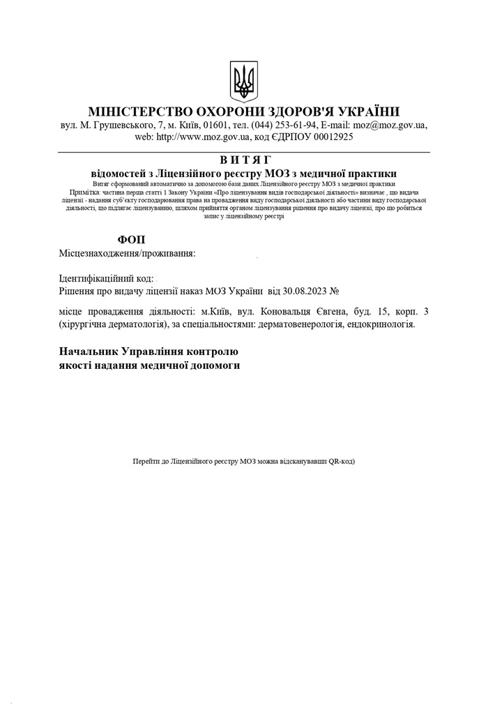 Так, безстрокова. Раніше ліцензія на медичну практику видавалася на 5 років, але сьогодні у неї немає терміну дії. При цьому безстроковий статус може бути втрачений унаслідок анулювання ліцензії (за власним бажанням ліцензіата або через порушення ліцензійних умов) або внаслідок змін в законодавстві.