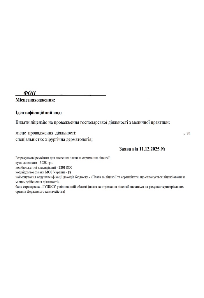 - заповнення заяви про отримання ліцензії на провадження господарської діяльності з медичної практики;